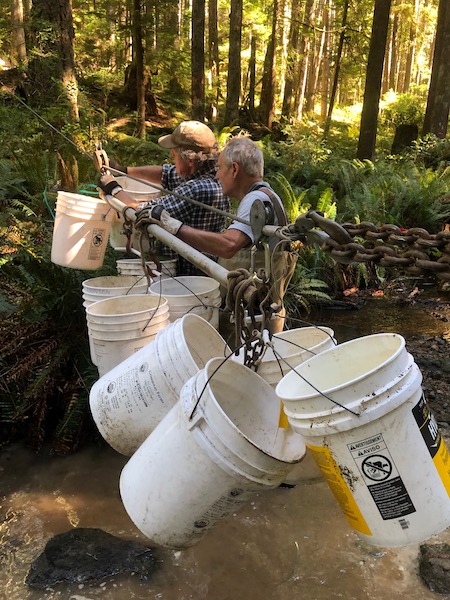 How many people does it take to move 9000 pounds of spawning gravel? Twenty-one sweaty, hard-working volunteers!